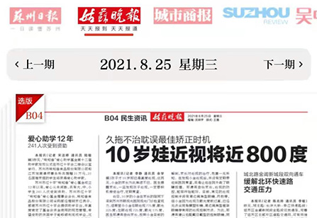 • 《姑蘇晚報》一成幼兒存在視力異常!姑蘇區(qū)近視發(fā)生率逐年上升