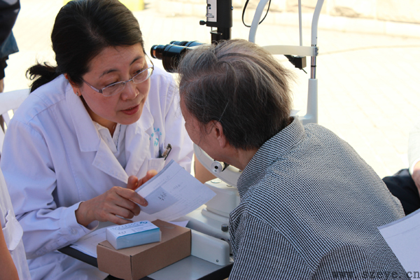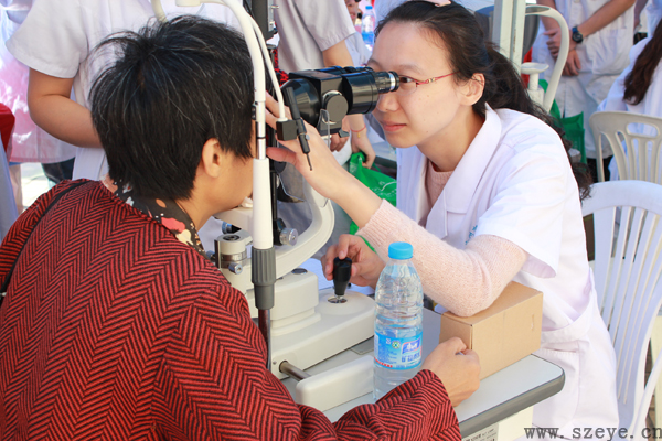 張姍姍醫(yī)生為患者做裂隙燈檢查