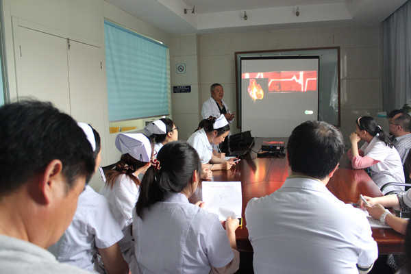 李老師主要為大家介紹了心肺復(fù)蘇中電除顫的相關(guān)知識,他從電除顫的定義、操作流程、操作方法、注意事項以及并發(fā)癥狀等方面進(jìn)行了詳細(xì)的闡述。通過李老師深入淺出的講解,參加人員對心肺復(fù)蘇中電除顫知識有了更加客觀、直接、深入的認(rèn)識和了解。