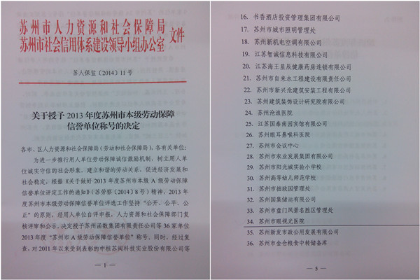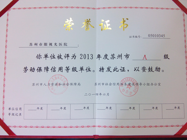 蘇州市勞動(dòng)保障信譽(yù)單位評選工作于六月份落下帷幕,蘇州市眼視光醫(yī)院榮獲“蘇州市A級勞動(dòng)保障信用等級單位”稱號。