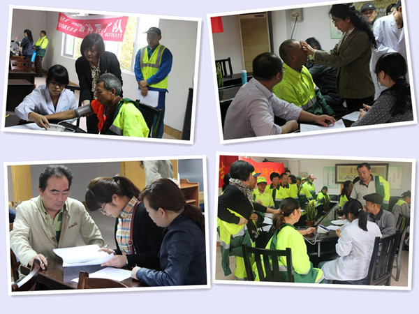 活動從8點開始,環(huán)衛(wèi)工人聽說有眼科專家上門服務一早就排隊等候,“眼睛見風就流淚,一直沒去醫(yī)院,你們到家門口來檢查,方便多了”,張阿姨開心地和大家說。各位黨員和入黨積極分子也分工合作,有的發(fā)眼保健宣傳資料、有的登記體檢人員信息、有的為他們做眼科檢查、有的測視力、測血壓,大家忙的不亦樂乎??粗h(huán)衛(wèi)工人質(zhì)樸的臉龐、老繭橫生的手掌、因風而侵蝕流淚的眼睛大家很心酸,但看到他們因各位黨員和入黨積極分子耐心的檢查、輕聲的解答、一個幫助的動作而露出微笑的神情大家覺得再辛苦也是值得的。眼科檢查活動不僅包括常規(guī)的測視力、裂隙燈檢查還根據(jù)環(huán)衛(wèi)工人工作的特殊性增加了淚道疾病檢查、結(jié)膜囊熒光素試驗等。活動持續(xù)到下午三點半,共為130多位環(huán)衛(wèi)工人進行了詳細的眼科檢查,發(fā)放眼科保健手冊140多份。
