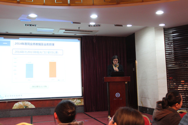 沈麗君院長(zhǎng)代表領(lǐng)導(dǎo)班子作2014年度醫(yī)院工作總結(jié),她從全面加強(qiáng)醫(yī)院內(nèi)部管理,提高醫(yī)院核心競(jìng)爭(zhēng)力和大力拓展醫(yī)院對(duì)外服務(wù),擴(kuò)大醫(yī)院社會(huì)影響力等全面總結(jié)了2014年度醫(yī)院取得的成績(jī)。她表示,2014年醫(yī)院在董事會(huì)的關(guān)懷和領(lǐng)導(dǎo)下,在領(lǐng)導(dǎo)班子的帶領(lǐng)下,醫(yī)院深入推進(jìn)黨的群眾路線教育實(shí)踐活動(dòng),積極開展“三型”黨組織創(chuàng)建工作,圍繞醫(yī)院各項(xiàng)中心工作,凝心聚力,以“保障安全,提高質(zhì)量,改善服務(wù)”為核心,緊緊圍繞“三好一滿意”活動(dòng)主題,狠抓制度建設(shè),醫(yī)教研全面發(fā)展,醫(yī)德醫(yī)風(fēng)建設(shè)常抓不懈,醫(yī)療服務(wù)水平不斷提高,住院患者、門診患者滿意度不斷提升。2015年是加快推進(jìn)醫(yī)院全面建設(shè)創(chuàng)新發(fā)展的關(guān)鍵之年。我們必須準(zhǔn)確認(rèn)清形勢(shì)任務(wù),真抓實(shí)干、開拓進(jìn)取,以更高的標(biāo)準(zhǔn)、更大的干勁、更實(shí)的作風(fēng),努力實(shí)現(xiàn)年度工作目標(biāo)。