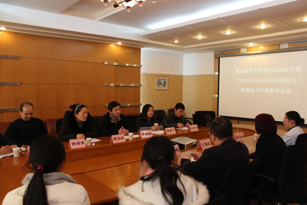 3月2日,南京醫(yī)科大學(xué)第四臨床醫(yī)學(xué)院副書記、副院長(zhǎng)盛彤彤,康達(dá)學(xué)院副書記、副院長(zhǎng)段振東等一行6人來到蘇州市眼視光醫(yī)院進(jìn)行實(shí)習(xí)中期教學(xué)檢查。醫(yī)院黨總支書記丁旭紅、辦公室主任陶鴻、醫(yī)務(wù)部主任高小偉及南醫(yī)大全體實(shí)習(xí)生出席了會(huì)議。