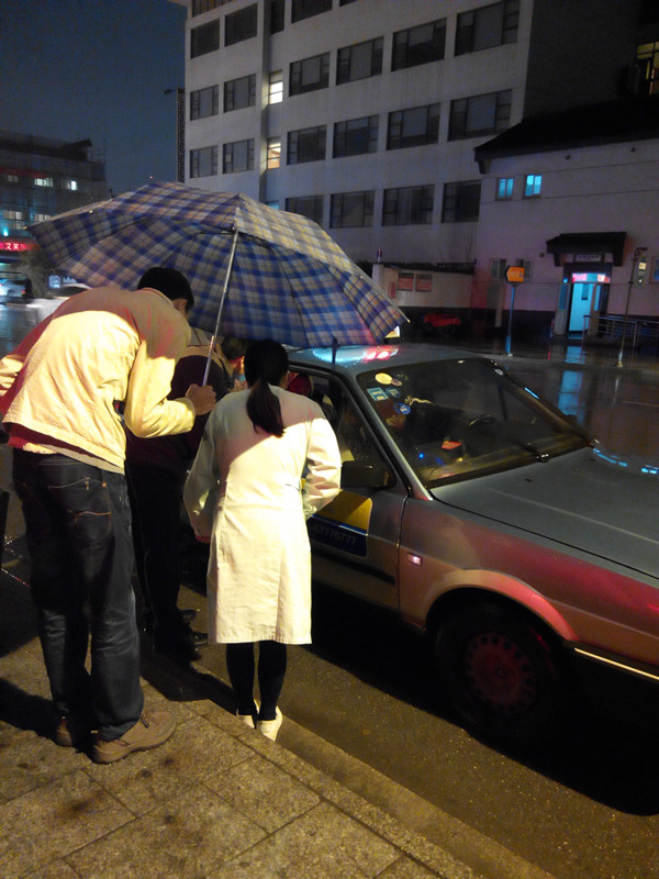 為了保證兩位老人的出行安全,當(dāng)天的病房護(hù)士陳雙雙根據(jù)醫(yī)生的要求立即聯(lián)系了老人家的兩個(gè)兒子,但得到的回復(fù)卻都是不能來(lái)醫(yī)院接。眼看到了下班時(shí)間,外面的雨越下越大,風(fēng)也越刮越猛,吳醫(yī)生和陳護(hù)士為老人家回家的事情發(fā)了愁。在這樣惡劣的天氣里,沒有家屬來(lái)接,對(duì)兩位高齡的老人來(lái)說(shuō)是非常不安全的,為了保證兩位老人安全到家,他們隨即決定幫老人叫出租車。晚上五點(diǎn)到七點(diǎn),正值上下班和市區(qū)交通的高峰期,他們不間斷的撥打著叫車電話,一次又一次的在電話電波中等待,卻一次又一次的叫車失敗,期間吳醫(yī)生曾多次冒著大雨著急的打著傘去路口攔車,任憑大風(fēng)吹歪了雨傘,雨水打濕了褲腳。兩位老人看天色漸黑,回家的心情也更加急切,陳護(hù)士在不斷的安撫他們,讓他們不要著急,并告訴他們不管多晚,我們一定會(huì)護(hù)送他們安全上車。功夫不負(fù)有心人,終于在持續(xù)叫車兩小時(shí)后叫到了出租車。