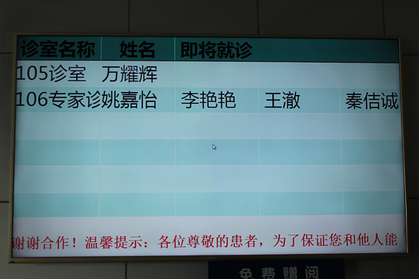 醫(yī)院在啟用門診就診排隊(duì)叫號(hào)系統(tǒng)后,還即將陸續(xù)投入使用電子病歷系統(tǒng)、電子醫(yī)囑系統(tǒng)和電子護(hù)理記錄系統(tǒng),這些都是醫(yī)院為了優(yōu)化就診流程、加強(qiáng)門診醫(yī)患溝通、提高醫(yī)療質(zhì)量管理、推進(jìn)醫(yī)院信息化建設(shè)、促進(jìn)醫(yī)患和諧,持續(xù)改善服務(wù)質(zhì)量所采取的措施。(撰稿:湯曉明 審稿:黃小瓊 攝影:湯曉明)