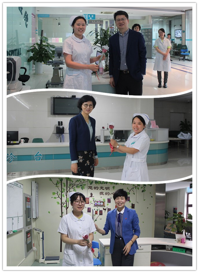 一大早,院領(lǐng)導(dǎo)們一行帶著精心準(zhǔn)備的禮物和鮮花,從一樓視光分診臺(tái)、二樓眼病分診臺(tái)、護(hù)士辦到三樓病房護(hù)士站,走訪了每個(gè)堅(jiān)守在臨床一線的護(hù)士們并為她們獻(xiàn)上鮮花及節(jié)日的慰問(wèn),把最真誠(chéng)的祝福送給了眼視光最可愛(ài)的天使們。