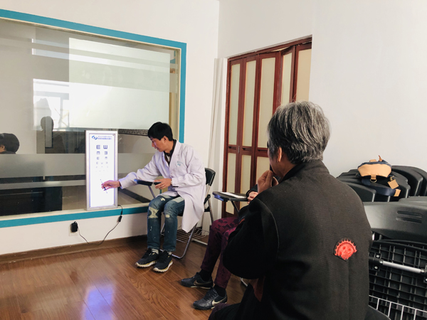 活動現(xiàn)場,醫(yī)療團隊為老人們建立眼科健康檔案,進行視力檢查,顧麗萍醫(yī)生使用手持式裂隙燈和便攜式眼底照相機為老人們進行眼部健康檢查,并解答老人們關(guān)于眼部疾病的疑問。經(jīng)過活動現(xiàn)場初步篩查,很多老人患有高血壓或糖尿病。