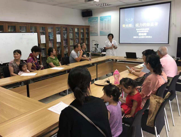 2019年8月6日,蘇州市眼視光醫(yī)院公益愛心團隊應(yīng)金星苑社區(qū)居委會邀請,在社區(qū)活動中心開展愛眼活動。本次活動由傅映暉副院長帶隊,開展青光眼公益講座以及眼科健康公益篩查活動。
