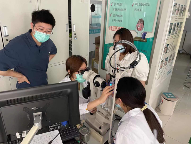 此次分享會分為兩個階段,第一階段由培訓老師為大家梳理了角膜塑形鏡的“前世今生”、規(guī)范的驗配流程,并向大家講解了角膜地形圖在驗配角膜塑出鏡中的必要性,使大家在日常的臨床工作中有更好的規(guī)范操作理論知識。培訓過后,每位同事按序分享心得體會、提出自己的問題,最后牛燕主任進行會議總結。第二階段,職工們來到了日常工作的第一線,在牛主任與培訓老師的指導下組織了一場特殊的比賽,兩人一組互相驗配,每一位職工積極參與其中,從配前檢查到交付定片,按照規(guī)范化的要求進行操作。