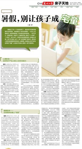 暑假過(guò)了近一個(gè)月的時(shí)間了,很多孩子在做好暑假作業(yè)的同時(shí),暢享著這個(gè)快樂的假期——去水上樂園游泳、去影院看電影、去風(fēng)景名勝地旅游……好不開心。但是也有一些孩子,從暑假開始,就成了“小宅男”、“小宅女”,足不出戶,只喜歡在家里看電視、玩電腦,拒絕一切戶外活動(dòng),處于一種“與世隔絕”的狀態(tài)。醫(yī)生和心理專家提醒爸爸媽媽們,暑假里,應(yīng)避免讓孩子成為這樣的“宅童”,以免孩子的身心受到一些不良影響。