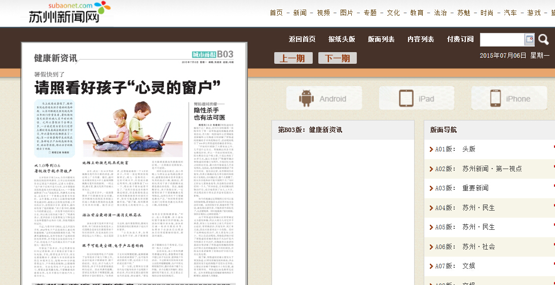 馬上就要放暑假了,眼科醫(yī)院也將迎來孩子看病的高峰期。從蘇州眼視光醫(yī)院視光部往年的門診量來看,暑假期間每天就診的病人是平時的兩倍。之所以暑假孩子會那么多,一方面是因為家長們覺得上課時間來看病會耽誤孩子學習,所以暑假時段都擠在了一起;另一方面暑期學生放假在家,各種電子產(chǎn)品的高頻率使用、游泳等原因,都讓孩子的眼睛出了問題。