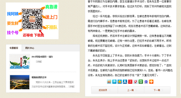朱先生于日前登上了手術(shù)臺,李院長親自操刀。手術(shù)十分順利。下了手術(shù)臺,朱先生表示:剛上手術(shù)臺還是很“緊張的,沒想到手術(shù)過程中一點也不疼,術(shù)后的視力恢復(fù)很好,比那時在美國做手術(shù)更舒適,感覺好極了?!贬t(yī)院術(shù)后復(fù)查,左眼視力由原來的指數(shù)眼前已經(jīng)恢復(fù)到0.6,走路,看書一點問題也沒有。朱先生特別激動,自己的左眼終于在“家”又重見光明了。