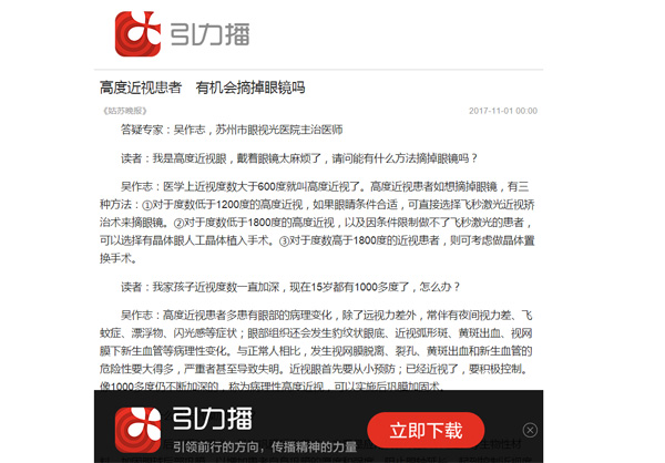 讀者:我是高度近視眼,戴著眼鏡太麻煩了,請(qǐng)問能有什么方法摘掉眼鏡嗎?