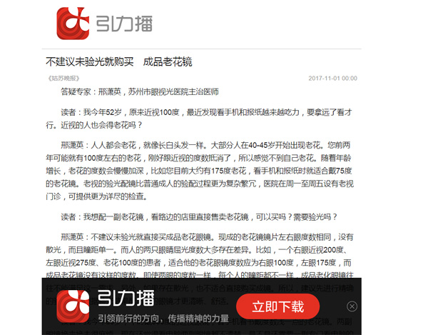 讀者:我今年52歲,原來近視100度,最近發(fā)現(xiàn)看手機和報紙越來越吃力,要拿遠了看才行。近視的人也會得老花嗎?