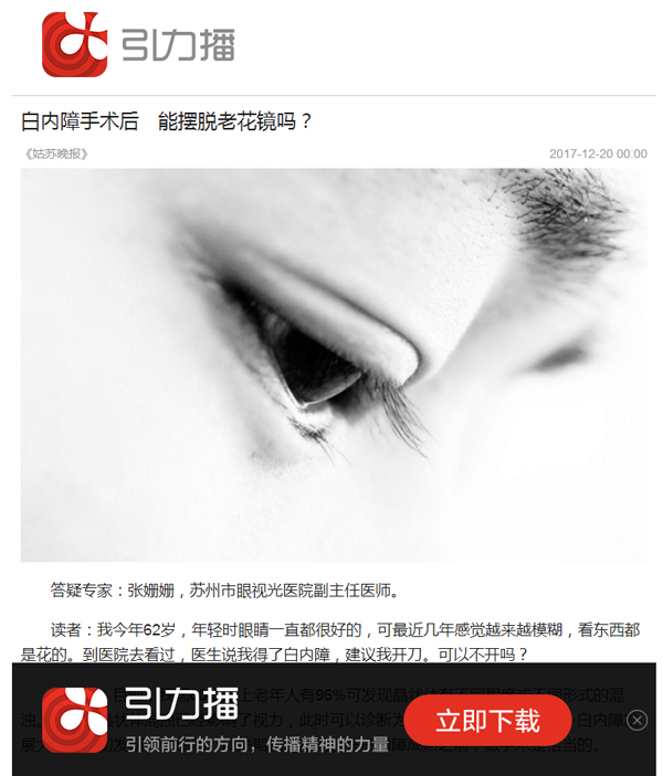 讀者:我是退休公務(wù)員,今年71歲,二十年前就開始戴老花鏡,最近診斷出來有白內(nèi)障。斷出來有白內(nèi)障。我聽很多人說,白內(nèi)障手術(shù)后可能還要戴一副老花鏡,感覺還是不方便。副老花鏡,感覺還是不方便。有更好的辦法么?更好的辦法么?