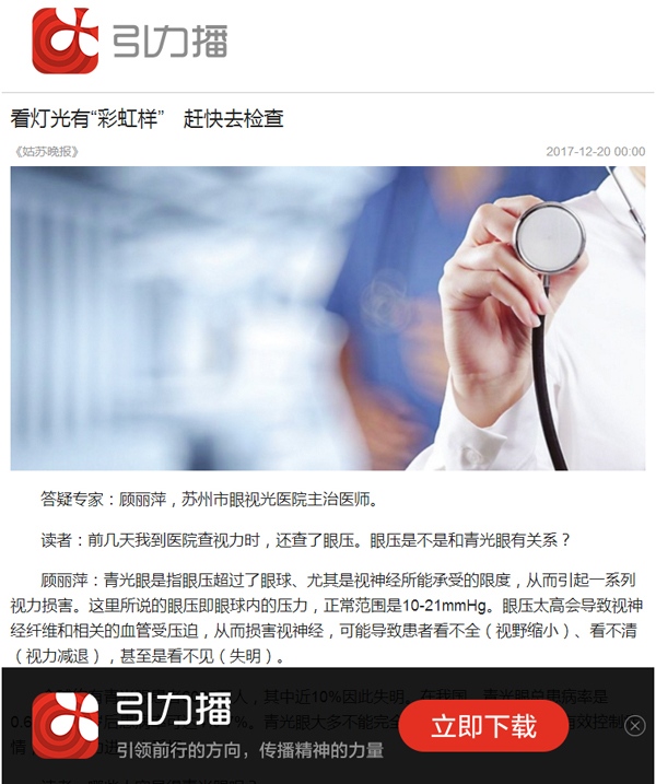 顧麗萍:青光眼是指眼壓超過了眼球、尤其是視神經(jīng)所能承受的限度,從而引起一系列視力損害。這里所說的眼壓即眼球內的壓力,正常范圍是10-21mmHg。眼壓太高會導致視神經(jīng)纖維和相關的血管受壓迫,從而損害視神經(jīng),可能導致患者看不全(視野縮?。?、看不清(視力減退),甚至是看不見(失明)。