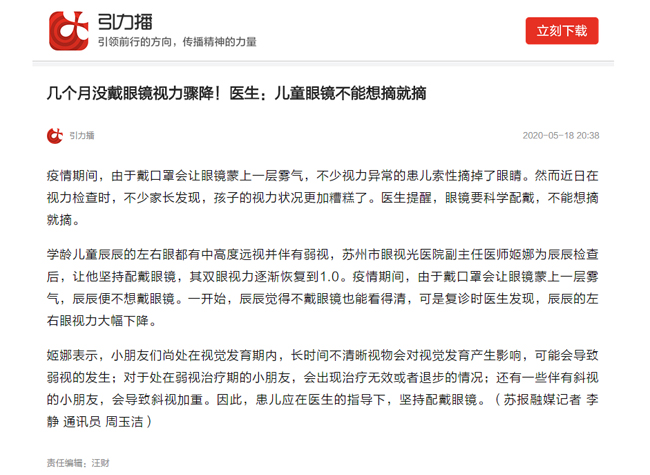學(xué)齡兒童辰辰的左右眼都有中高度遠(yuǎn)視并伴有弱視,蘇州市眼視光醫(yī)院副主任醫(yī)師姬娜為辰辰檢查后,讓他堅(jiān)持配戴眼鏡,其雙眼視力逐漸恢復(fù)到1.0。疫情期間,由于戴口罩會(huì)讓眼鏡蒙上一層霧氣,辰辰便不想戴眼鏡。一開始,辰辰覺得不戴眼鏡也能看得清,可是復(fù)診時(shí)醫(yī)生發(fā)現(xiàn),辰辰的左右眼視力大幅下降。