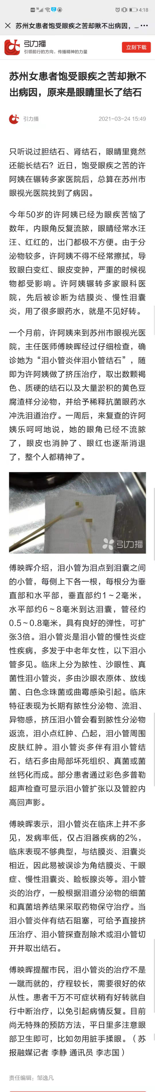 蘇州女患者飽受眼疾之苦卻揪不出病因,原來(lái)是眼睛里長(zhǎng)了結(jié)石