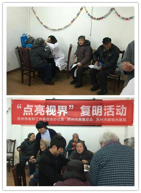 為關(guān)心老年人眼健康,提高老年人的生活質(zhì)量,蘇州市慈善總會、蘇州市老齡工作委員會辦公室(老齡辦)和蘇州市眼視光醫(yī)院聯(lián)合開展的“點(diǎn)亮視界”老人復(fù)明活動將為蘇州市各區(qū)共72家各類醫(yī)療養(yǎng)老機(jī)構(gòu)開展眼科體檢活動。2016年眼科體檢活動于3月1日正式啟動。