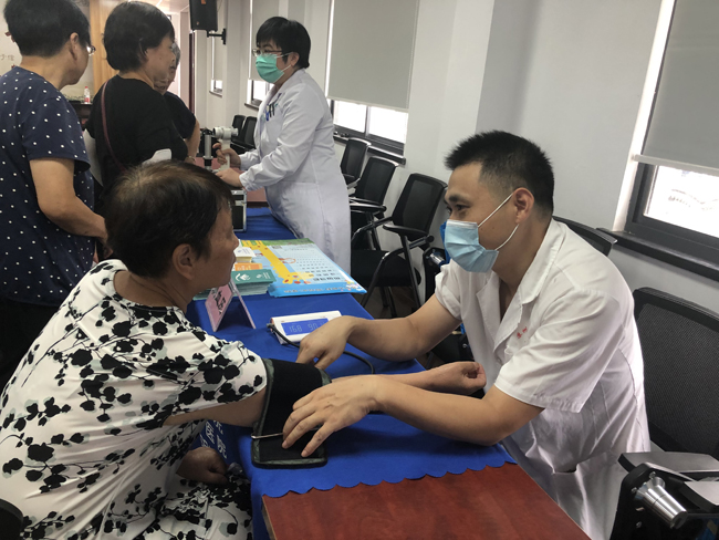 講座結束后,傅院長為老人進行眼科檢查,眼視光系(眼視光醫(yī)院)黨總支書記肖波為社區(qū)居民測量血壓,其他黨員分工明確,有的進行科普宣傳、有的輔助填寫資料。通過這次義診我們發(fā)現(xiàn),有些老人眼健康意識較差,患了白內(nèi)障就在藥店買些眼藥水滴,有些老人視力突然下降,卻不當回事,認為沒必要去醫(yī)院。針對這些老人,大家耐心宣教,打消他們的顧慮,囑咐他們,眼睛的問題無小事,發(fā)現(xiàn)異常要早診斷、早治療,讓老人們將防病與治病相結合,祝福老人們幸福安康。
