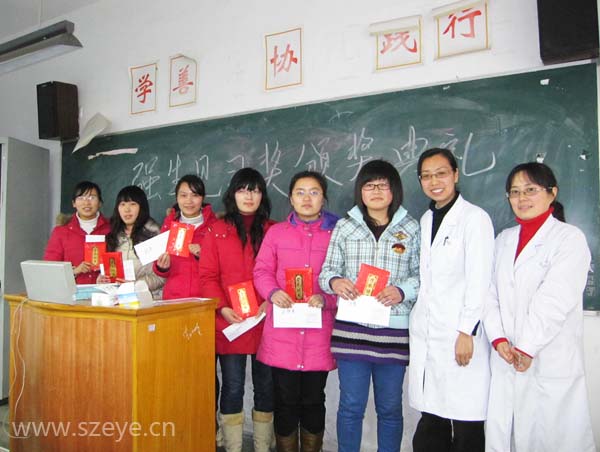 2月5日上午,本學期的最后一天,牛燕老師與姬娜老師給08級眼視光技術專業(yè)學生舉辦了“強生見習獎”頒獎儀式。
