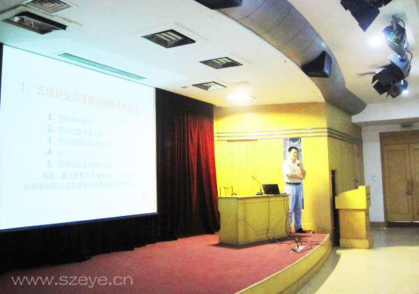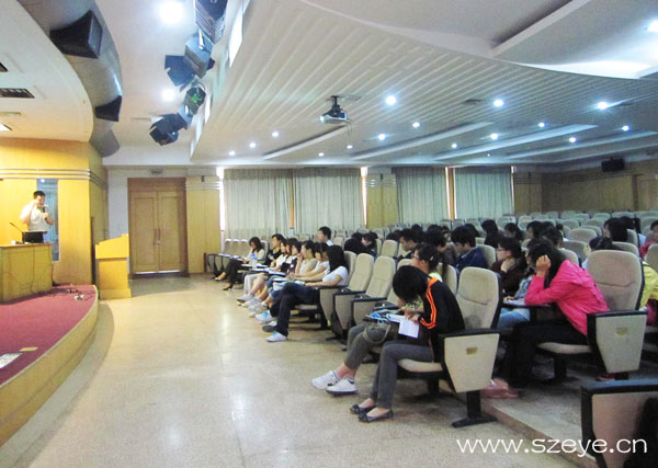 5月21日上午,上海鏡美眼鏡公司專業(yè)培訓(xùn)員劉亞威老師在蘇州衛(wèi)生職業(yè)技術(shù)學院第一報告廳內(nèi),給我院08級學生開展關(guān)于“小企業(yè)的創(chuàng)業(yè)與營銷”的講座。