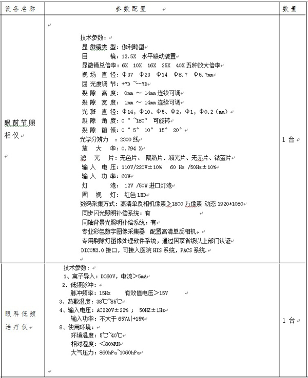蘇州市眼視光醫(yī)院擬采購(gòu)眼前節(jié)照相儀、眼科低頻治療儀設(shè)備一臺(tái),根據(jù)《中華人民共和國(guó)政府采購(gòu)法》等有關(guān)規(guī)定,現(xiàn)特向社會(huì)公開(kāi)詢(xún)價(jià)采購(gòu),歡迎具備獨(dú)立法人資格的相關(guān)單位前來(lái)報(bào)價(jià)?! ?br>一、采購(gòu)編號(hào):SZEYE-2018001