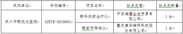關(guān)于眼前節(jié)照相儀、眼科低頻治療儀的成交公示