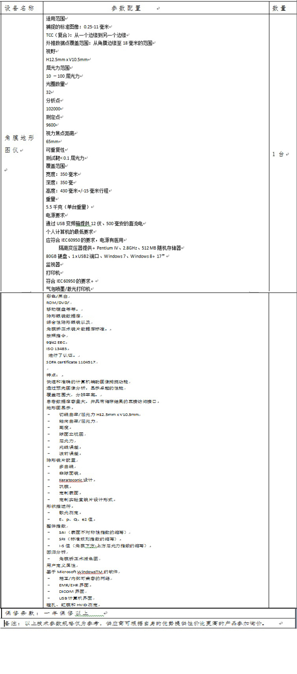 蘇州市眼視光醫(yī)院擬采購角膜地形圖儀一臺,根據(jù)《中華人民共和國政府采購法》等有關(guān)規(guī)定,現(xiàn)特向社會公開詢價采購,歡迎具備獨立法人資格的相關(guān)單位前來報價?! ?br>一、采購編號:SZEYE-20180010