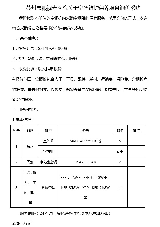 蘇州市眼視光醫(yī)院關(guān)于空調(diào)維護(hù)保養(yǎng)服務(wù)詢價(jià)采購(gòu)
