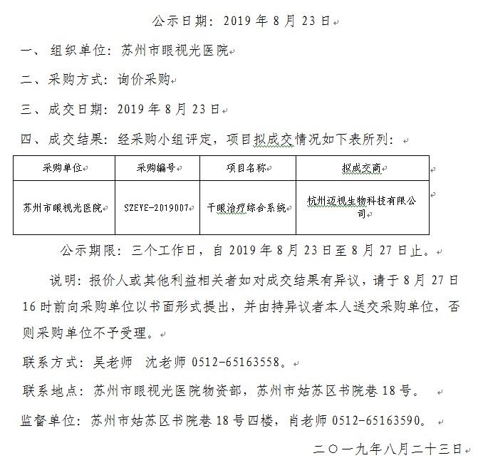 關(guān)于干眼治療綜合系統(tǒng)的成交公示