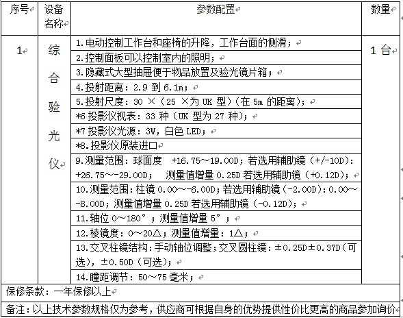 蘇州市眼視光醫(yī)院擬采購綜合驗光儀一臺,根據(jù)《中華人民共和國政府采購法》等有關規(guī)定,現(xiàn)特向社會公開詢價采購,歡迎具備獨立法人資格的相關單位前來報價?!?br>采購編號:SZEYE-2020008